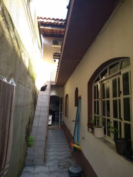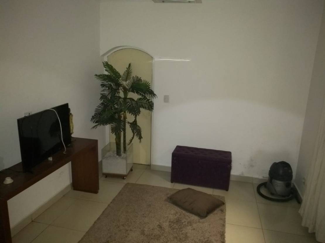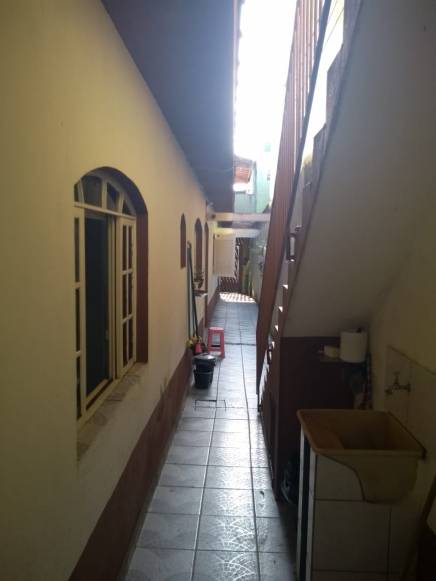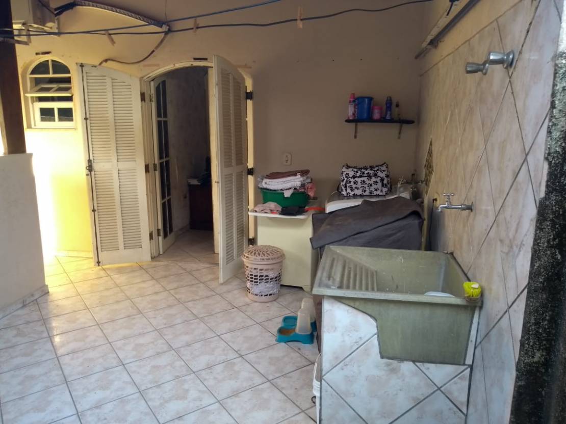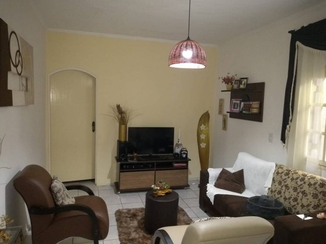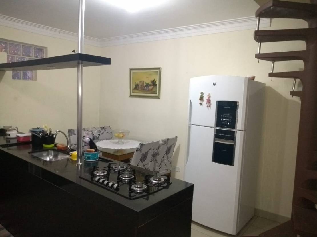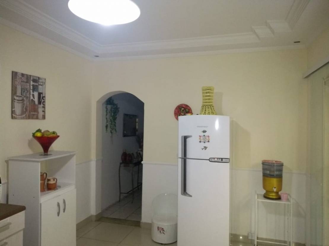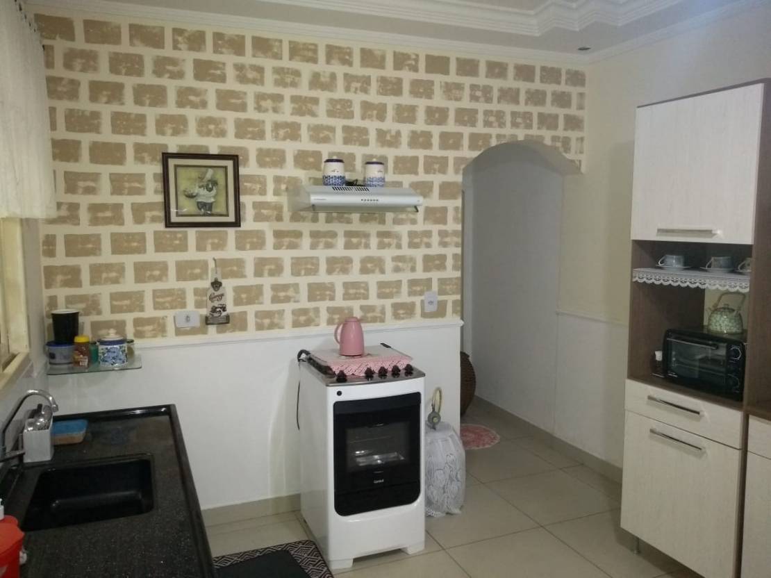 Casa com 3 dormitorios, copa, cozinha, sala de jantar, sala de estar, salão de festa com churrasqueira, garagem para 2 carros.