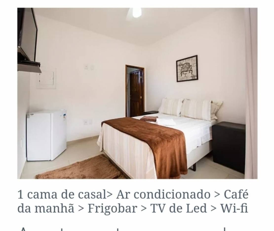 * 08 quartos com ar condicionado e frigobar.