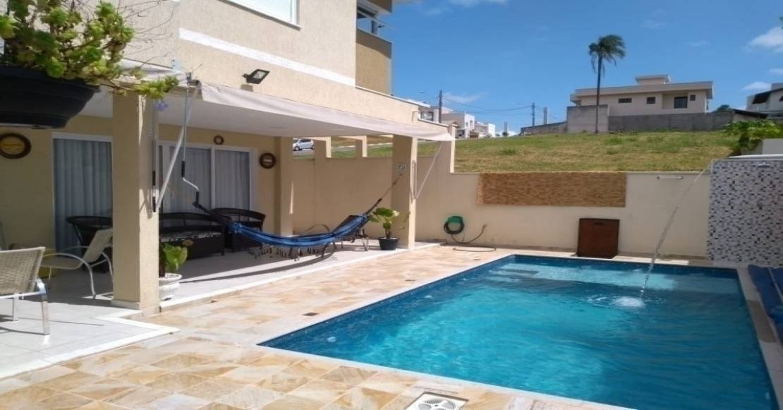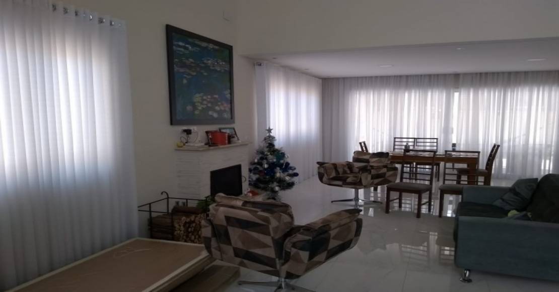 Possui: 4 suítes( sendo 1 master), sala de estar, sala de jantar, cozinha, piscina, lavanderia, garagem com 2 vagas cobertas, lareira, espaço gourmet.
